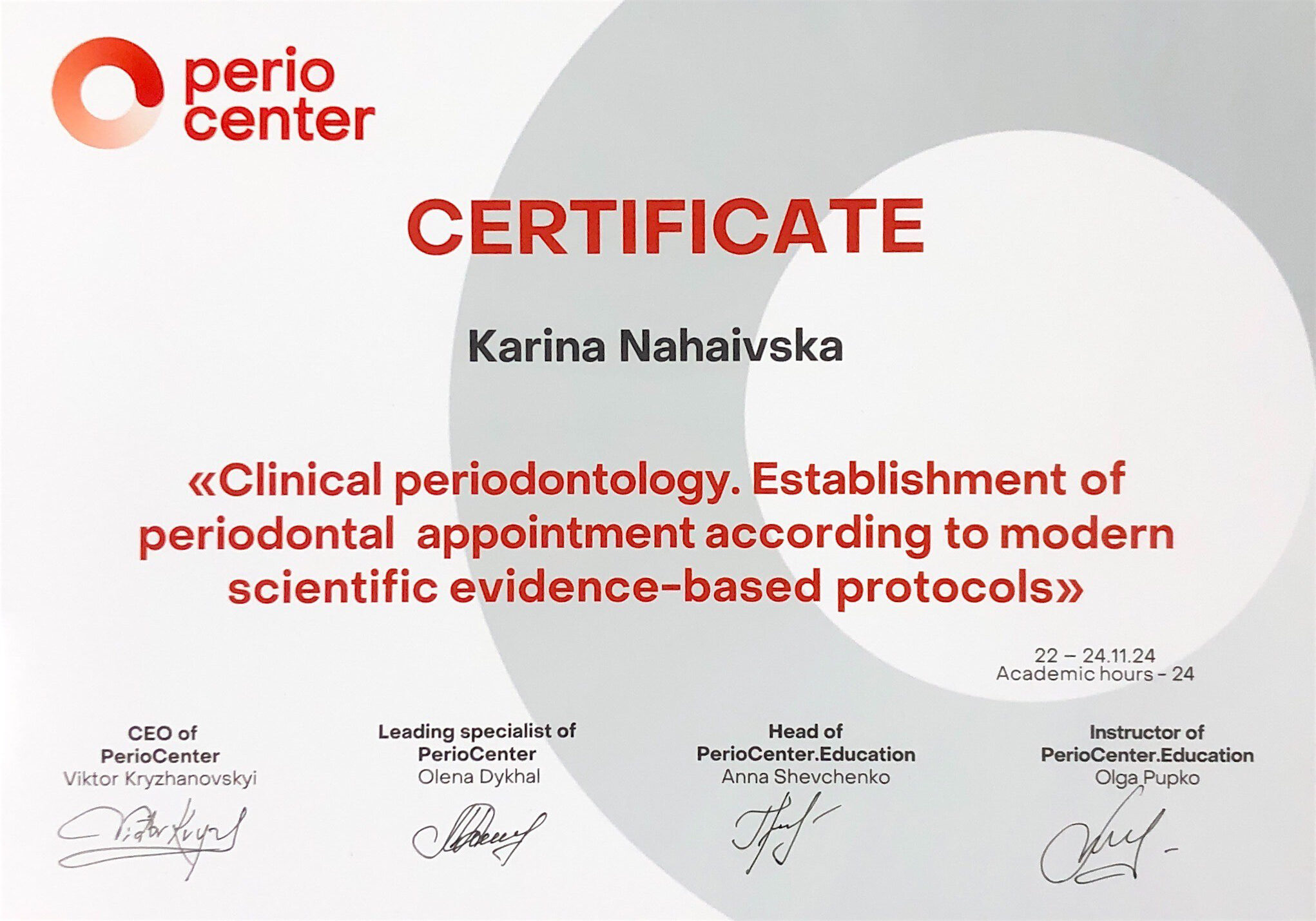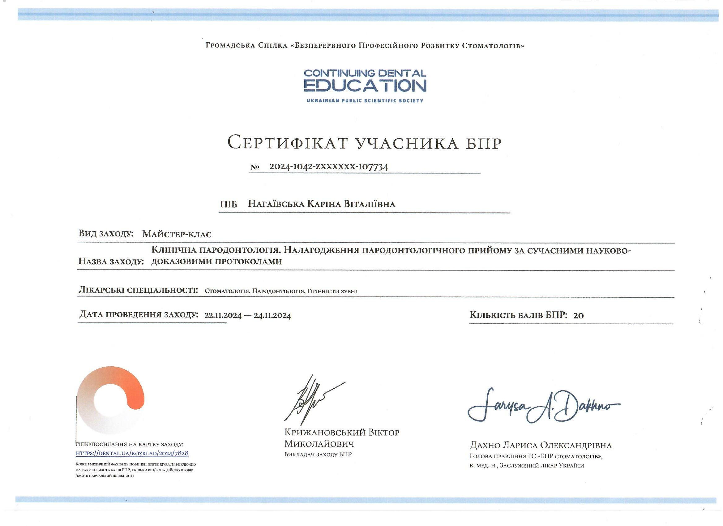 - Майстер – клас : клінічна пародонтологія,налагодження пародонтологічного прийому за сучасними науково- доказовими протоколами