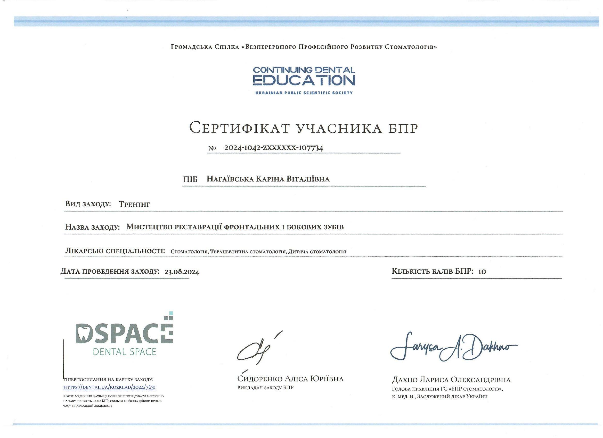 - Брала участь у науковій конференції для хірургів,пародонтологів та зубних гігієністів «IMPLANTS»