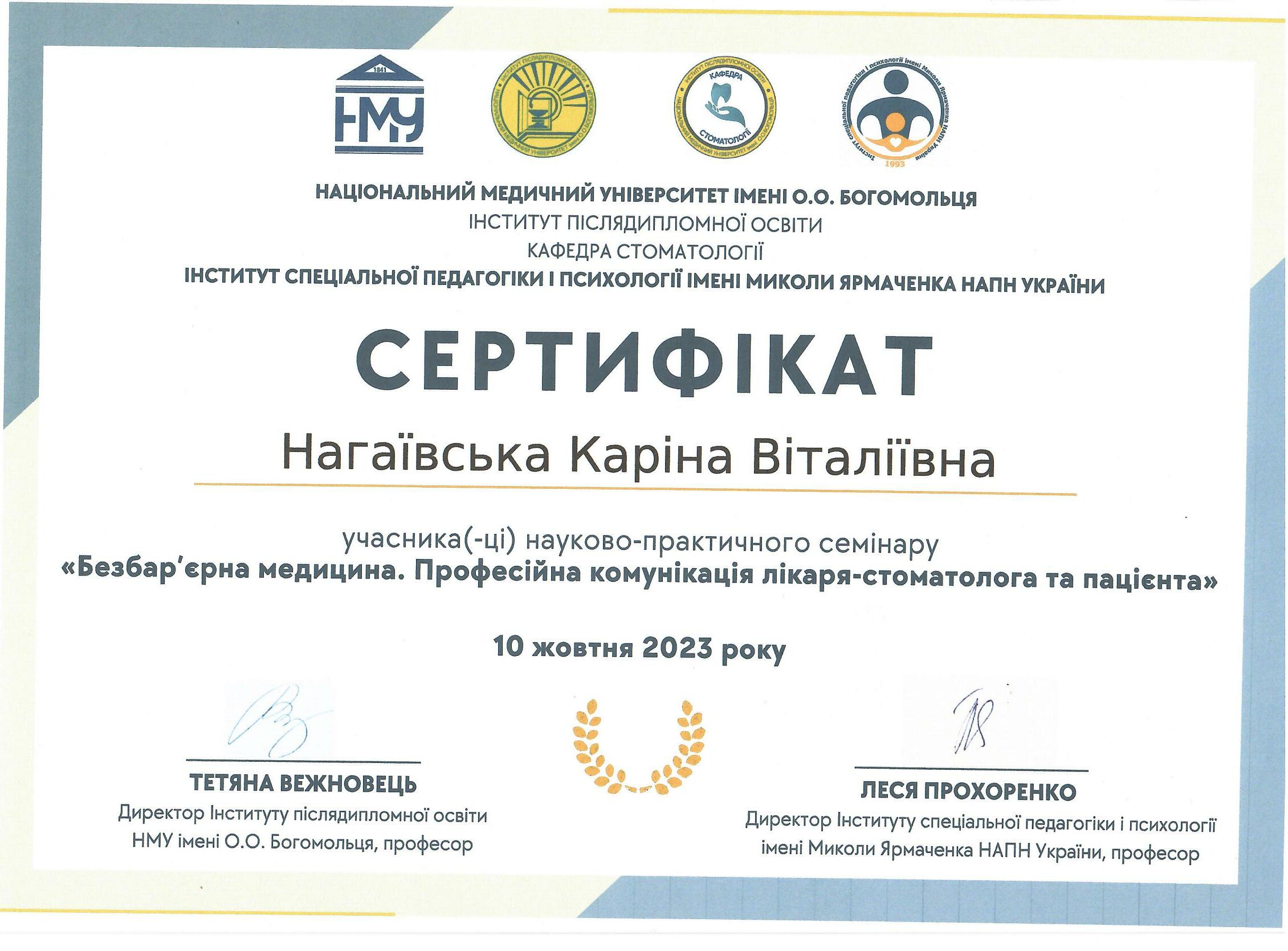 - Науково – практичний семінар: « Безбар’єрна медицина.Професійна комунікація лікаря -стоматолога та пацієнта.