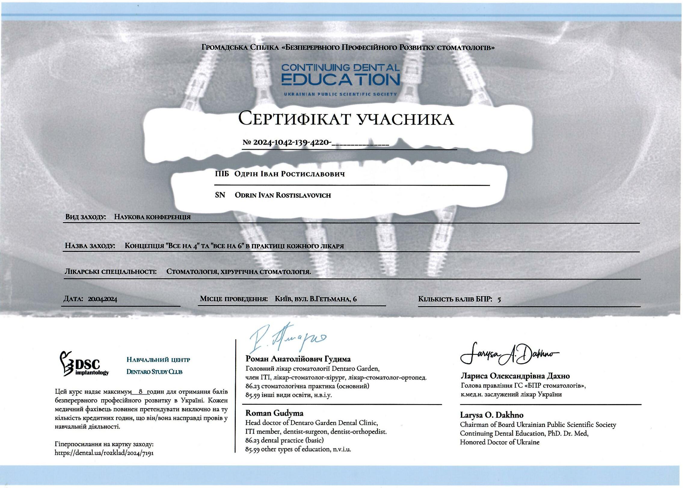 - Наукова конференція : Концепція «все на 4» та «все на 6».В практиці кожного лікаря» DSC IMPLANTOLOGY