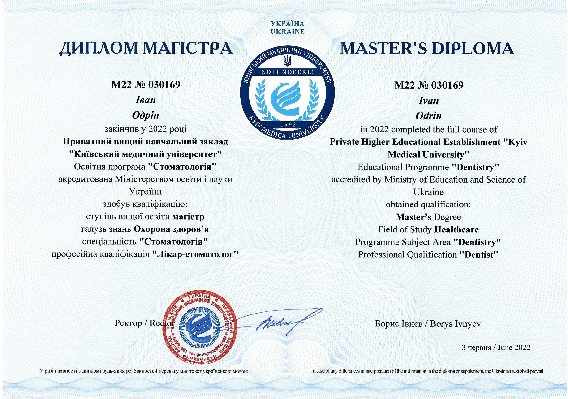 Іван – кваліфікований лікар-стоматолог терапевт – ендодонтист, який має надзвичайну увагу до деталей і відповідальність у своїй роботі. Він завжди прагне забезпечити найвищий рівень комфорту та допомоги своїм пацієнтам, приділяючи кожному з них індивідуальний підхід і роблячи все можливе для досягнення найкращих результатів лікування.